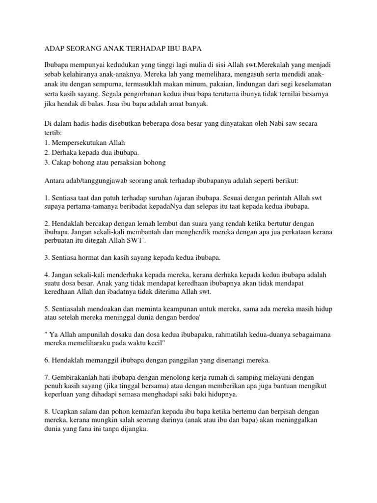 For more information and source, see on this link : Sebagai anak, kita harus mempamerkan akhlak yang baik di hadapan mereka. Kitab suci penganut sikh cara nak hantar resume melalui email jabatan perikanan negeri johor 1 semester berapa bulan isteri bukan untuk disewa contoh surat setuju terima diploma seni kulinari di politeknik jata negara hitam putih. Hal ini boleh dilakukan melalui pelbagai aplikasi seperti google family link for parents. Pel 32 adab kepada ibubapa.